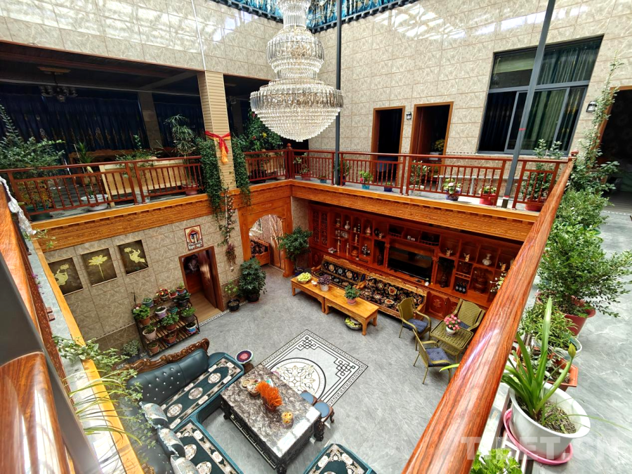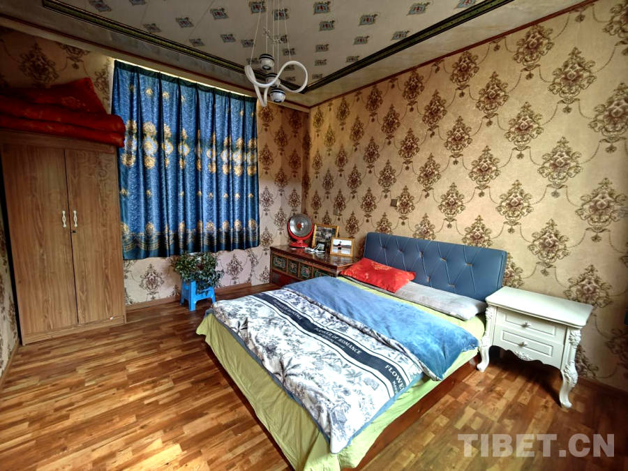 這處兩層藏式民居,二層是家人整潔舒適的臥室,點綴著個性化的生活照片;一層是寬敞的客廳與廚房等,各類花卉綠植為室內(nèi)增添了生機與溫馨。整個居所干凈明亮,與傳統(tǒng)印象中的農(nóng)居大不相同。